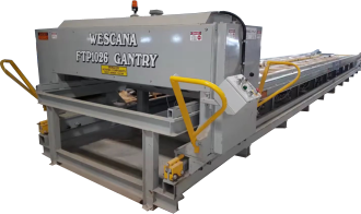 Wescana hydraulic press head with a 10’ wide table.
